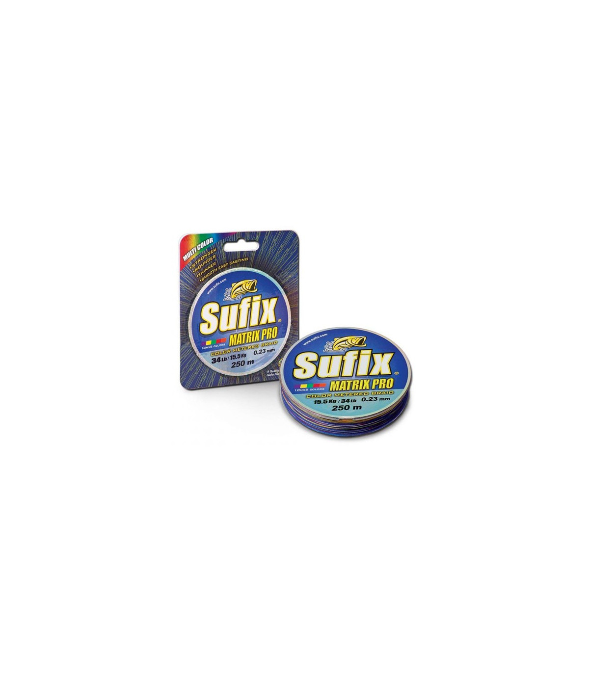 Trenzado Sufix Matrix Pro Color Metered de 15.5 kg. de resistencia y 0.23 mm. de diámetro en bobina de 250 metros de longitud.