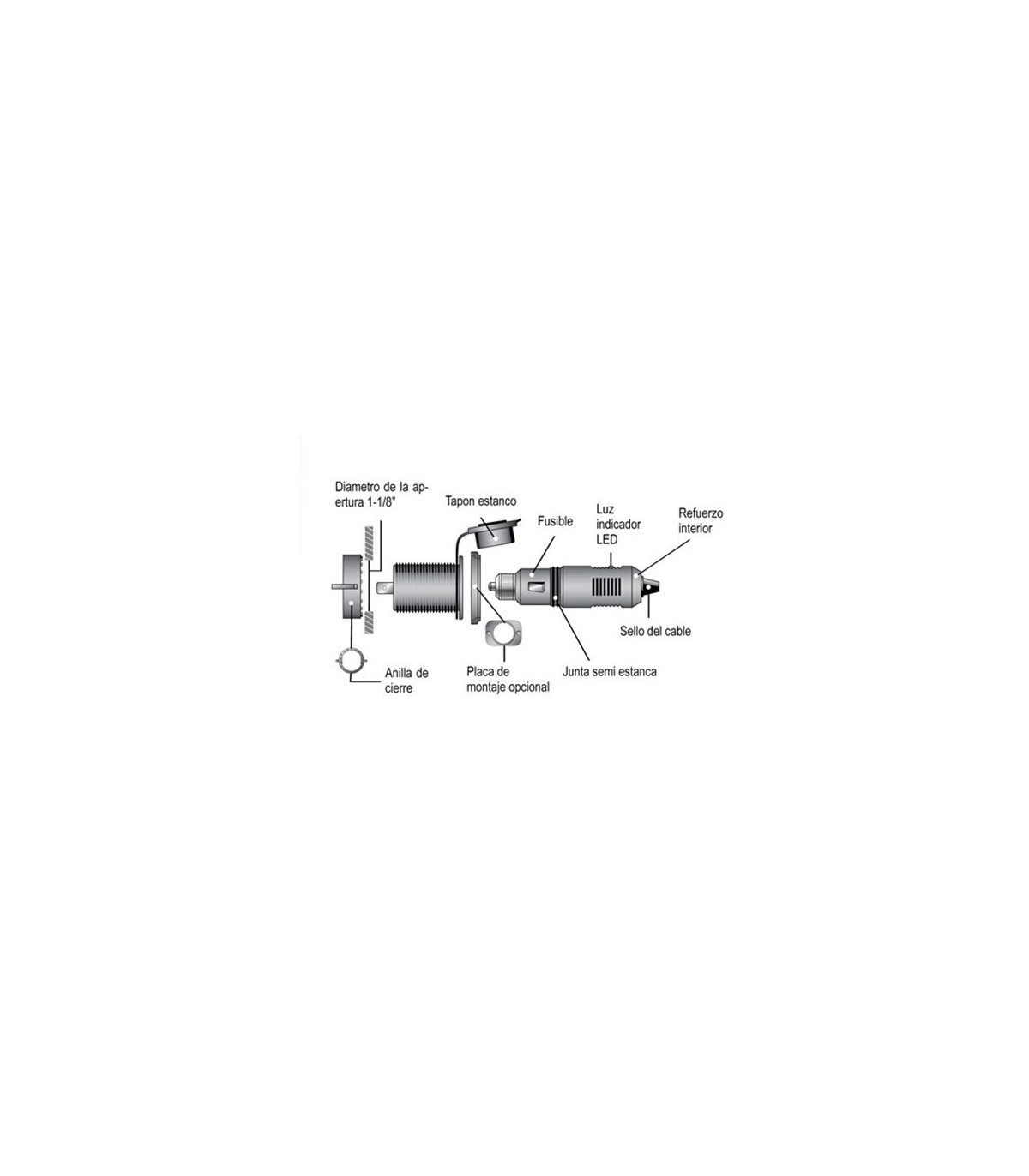 Equipo de toma de corriente marino Lalizas ideal para conectar todo tipo de equipos que necesitan corriente como linternas, teléfonos móviles, etc.