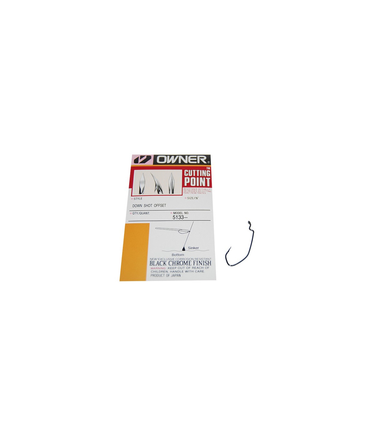 Anzuelo Owner Down Shot Offset de la talla 2/0 con ojal de anilla, punta cutting point y acabado black chrome para la pesca de depredadores.