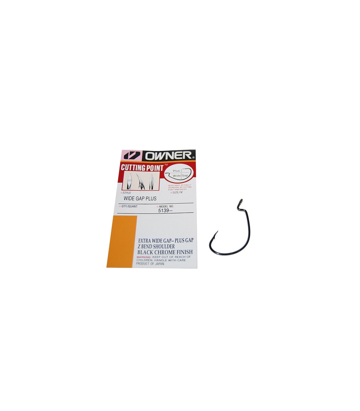 Anzuelo Owner Wide Gap Plus de la talla 4/0 con ojal de anilla, punta cutting point y acabado black chrome para la pesca de depredadores.