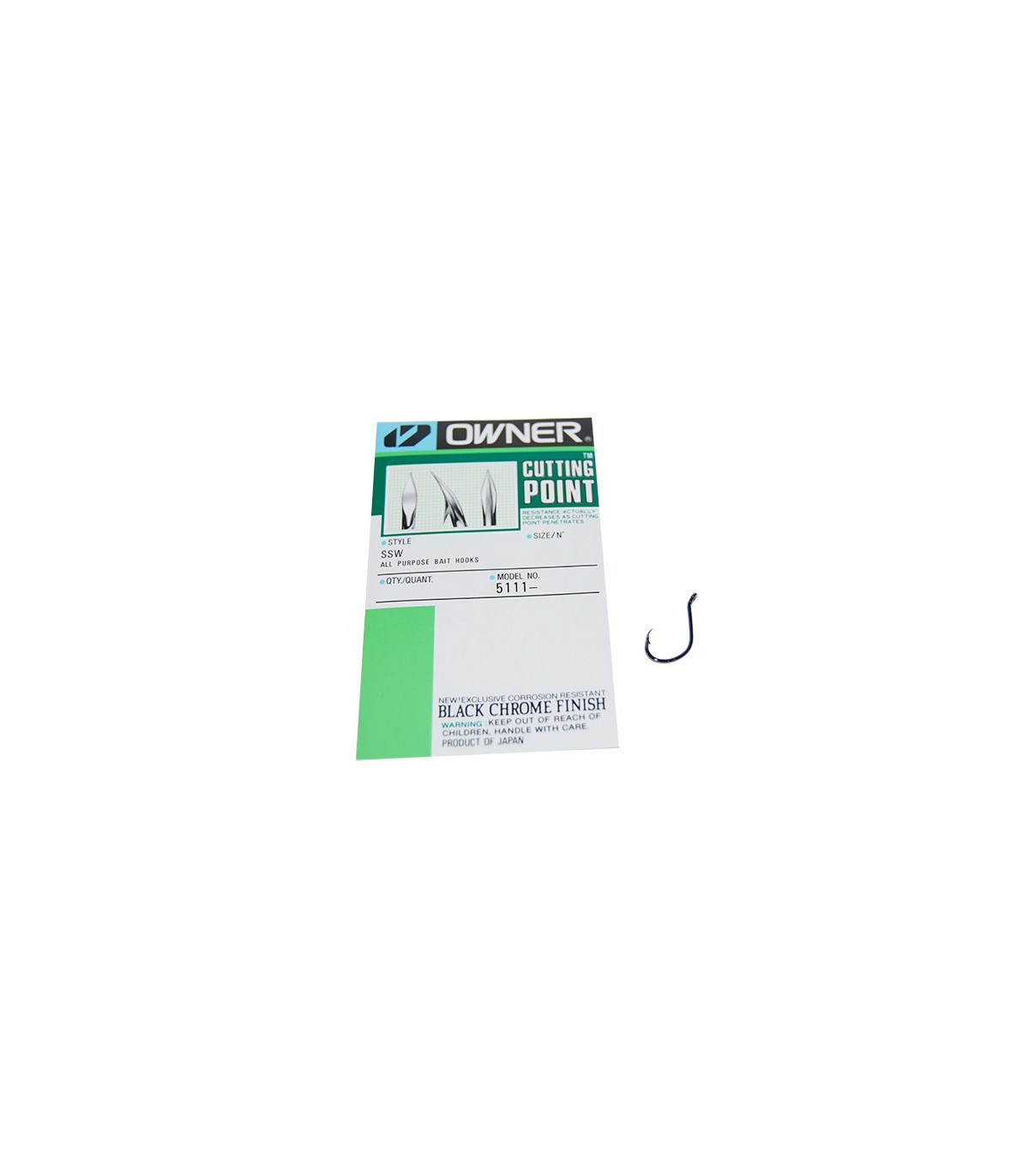 Anzuelo Owner SSW Black Chrome de la talla 2 con ojal de anilla, punta cutting point y acabado negro para la pesca de depredadores.