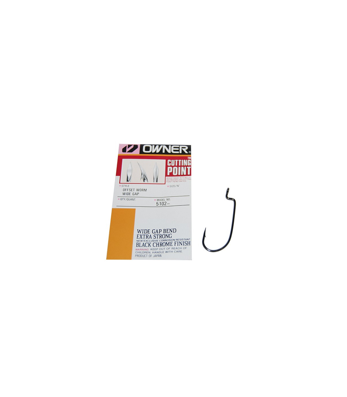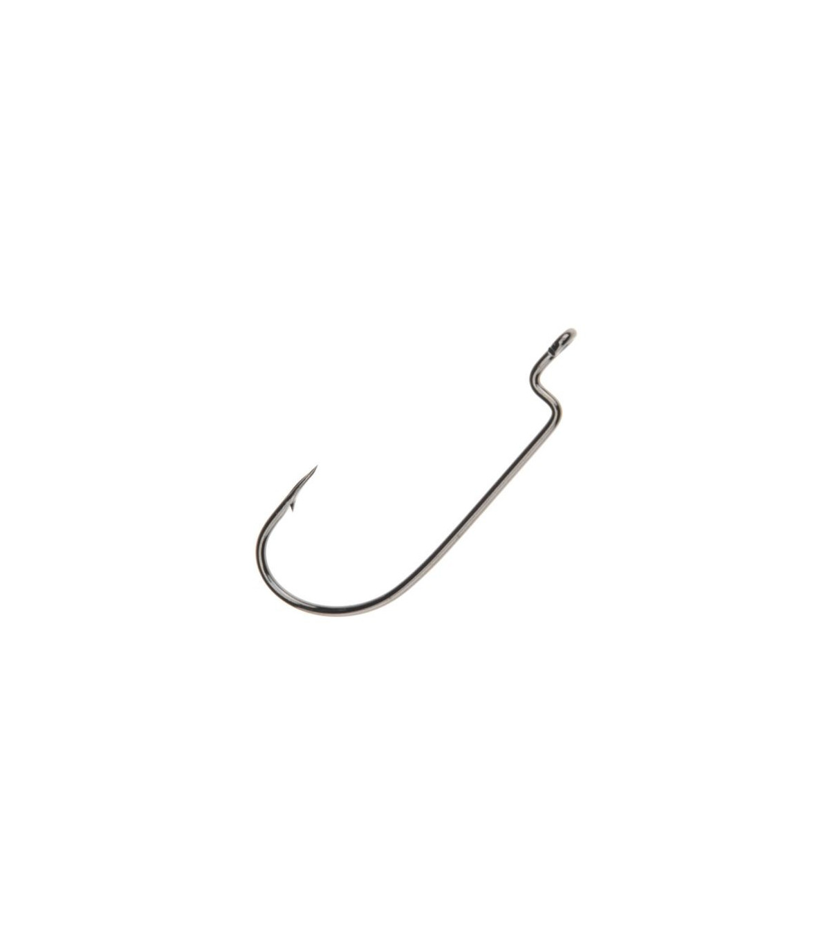 Anzuelo Owner Offset Worm Wide Gap de la talla 1/0 con ojal de anilla, punta cutting point y acabado black chrome para la pesca de depredadores.