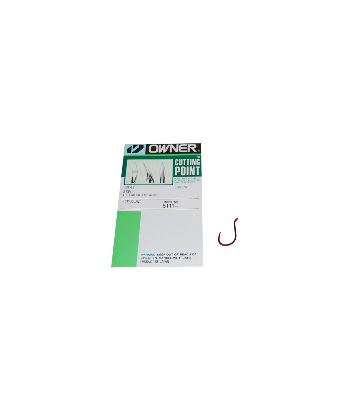 Anzuelo Owner SSW Red de la talla 6 con ojal de anilla, punta cutting point y acabado rojo para la pesca de depredadores.