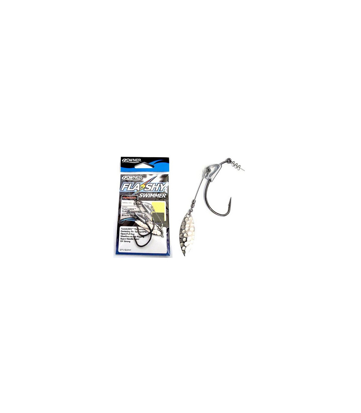 Anzuelo Owner Twistlock Flashy Swimmer CPS de la talla 5/0 y de 1/4 oz de peso con un acabado black chrome.