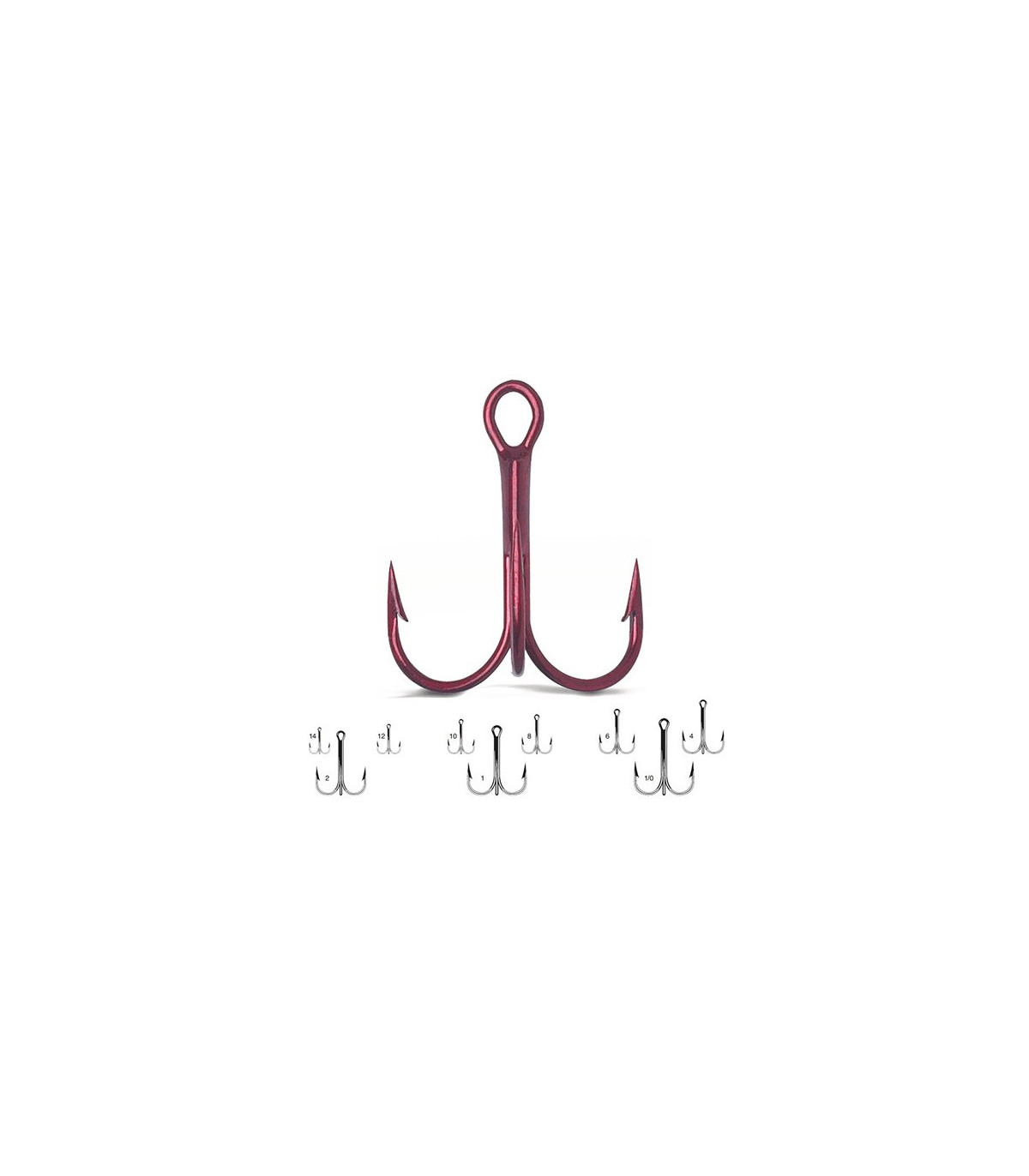 Anzuelo Triple VMC de la talla 2 en color rojo con ojal de anilla.