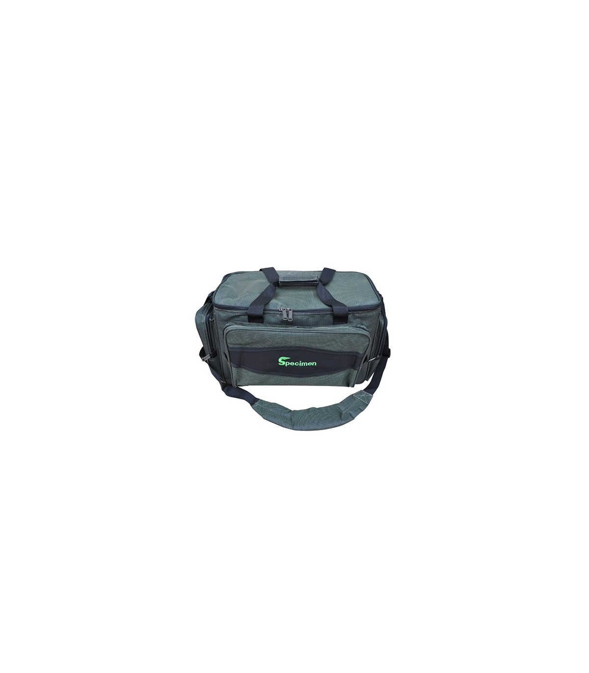 Bolso Specimen Carryall Insulated Isotérmico en color verde con doble cremallera y correa y asa para transporte de material de carpfishing.