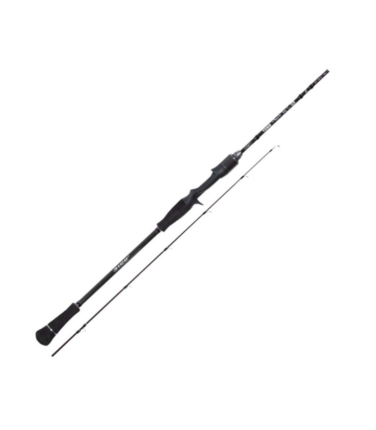 Blank de carbono macizo extra-resistente. Montada con anillas FUJI K. Portacarrete tipo PTSMPK (casting) Funda de tela.