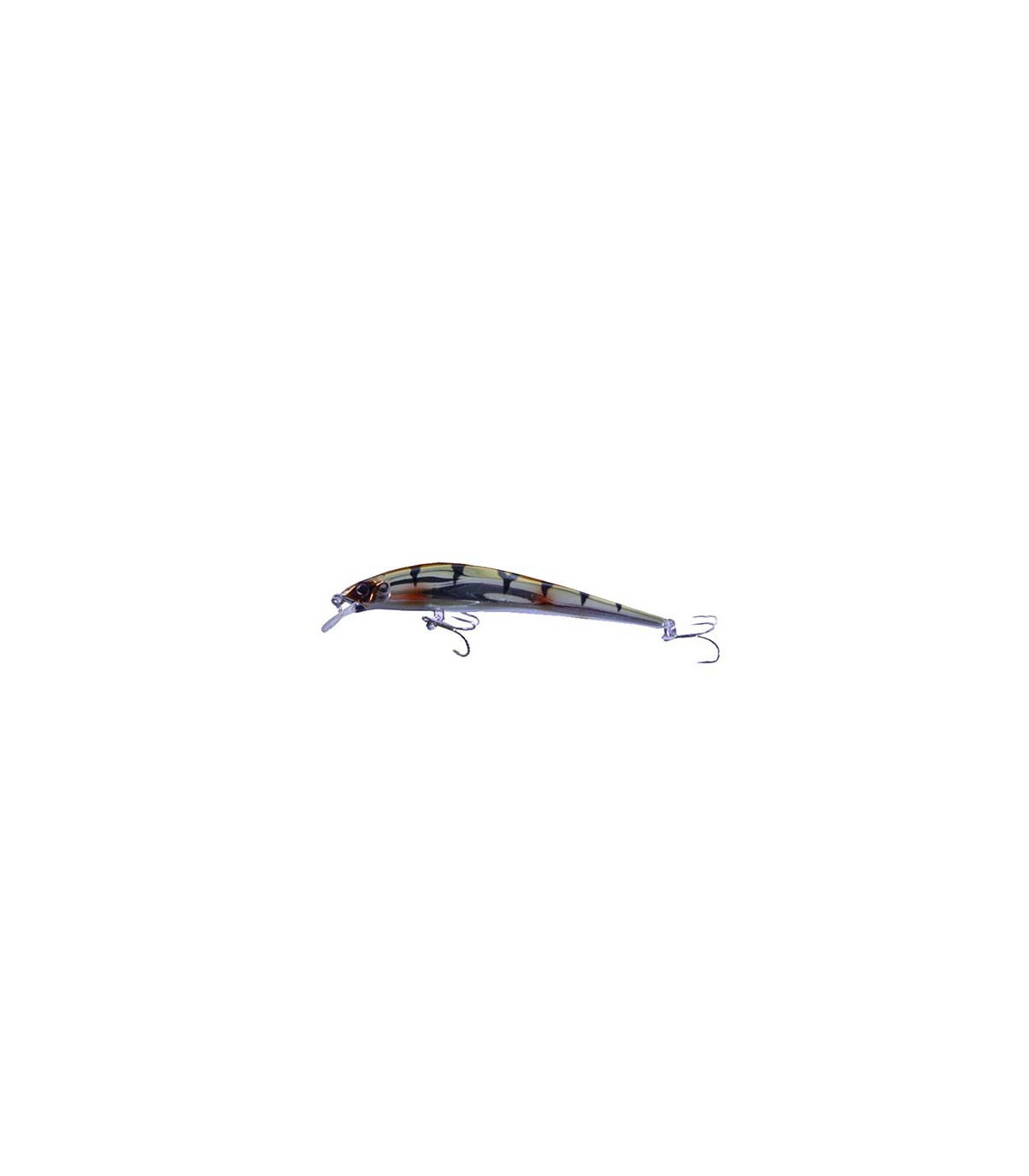 Señuelo pensado para la pesca del lucio, aunque nada desdeñable para sacar lubinas en aguas tranquilas. Moviemiento muy sugerente incluso a bajísimas velocidades, con un marcado rolling, acompañado de un wobling super atractivo, con el morro ligeramente inclinado hacia abajo. Su profundidad de natación se sitúa apenas un palmo por debajo de la superficie, con lo que lo podemos utilizar casi en cualquier parte.
